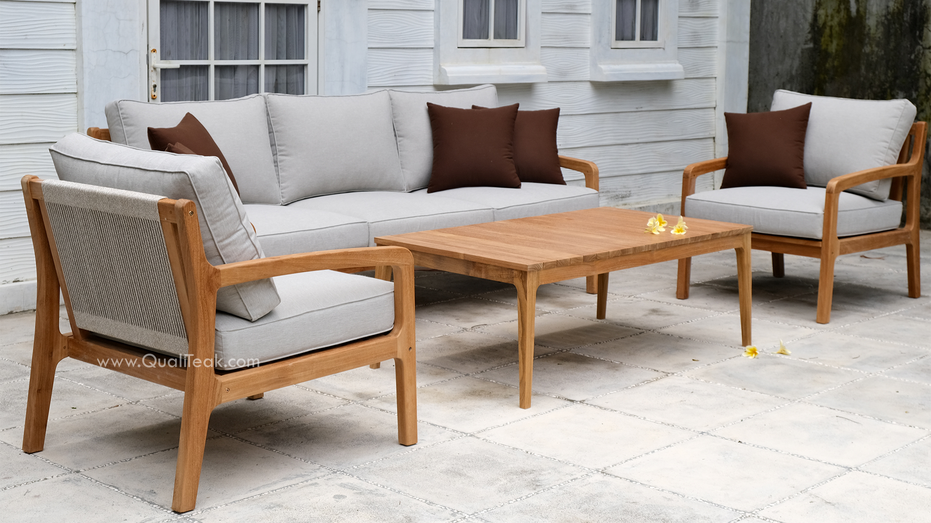 Note on B2B Customization: To give wholesale buyers ultimate flexibility, the pieces in this set can be purchased as individual SKUs to create custom patio configurations. As the direct manufacturer, Qualiteak also welcomes bulk customization requests for specific cushion fabric colors, rope colors, and even space-saving Knockdown (KD) frame construction for volume freight optimization.