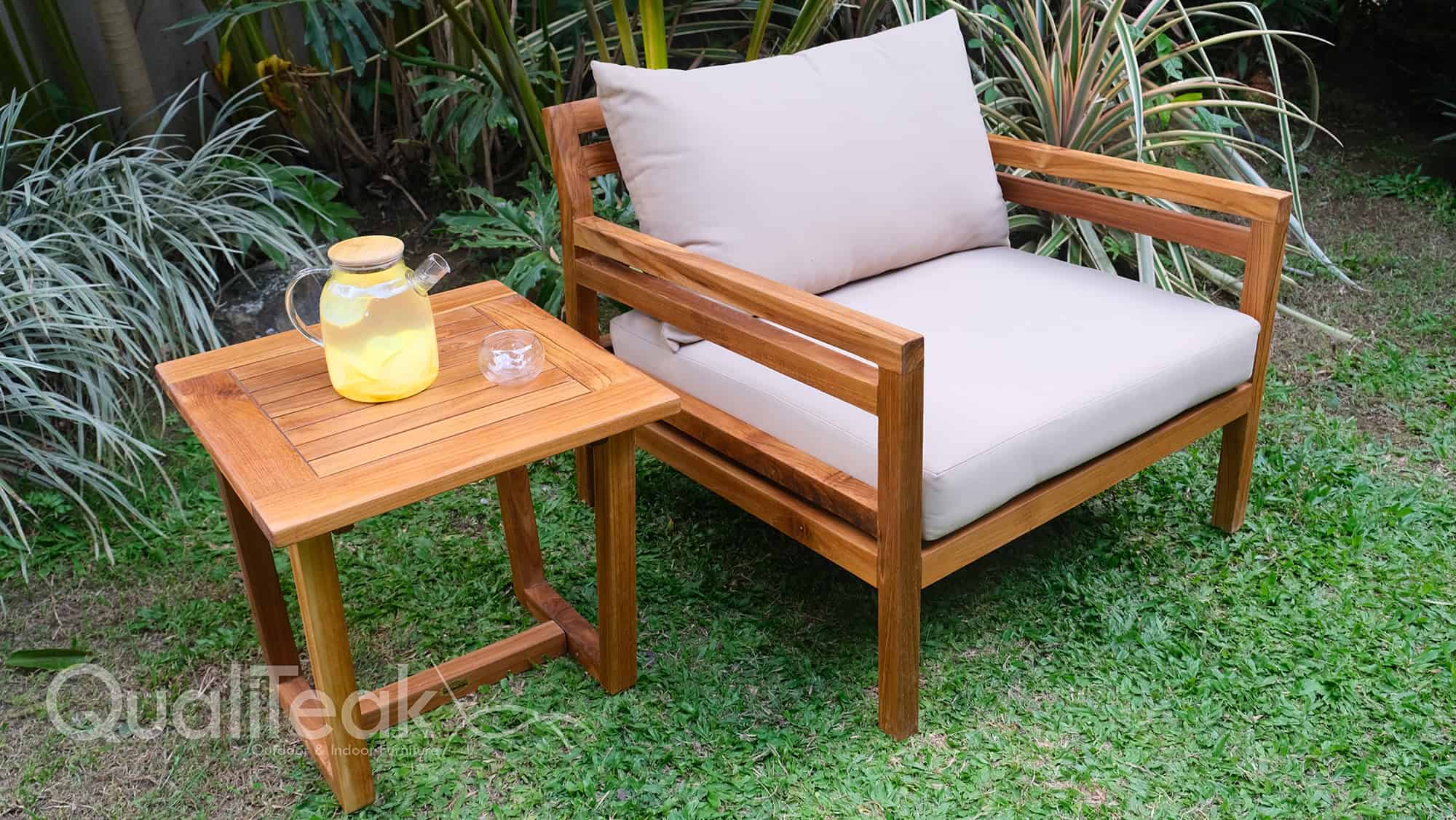 Made from solid premium teak, the Rio set is built to handle sun, rain, and real daily use, while still looking classy. It comes with deep, plush cushions using Quick-Dry Foam and water-resistant fabric, so it dries fast, stays fresh, and won’t turn into a damp-smelling mess after a sudden shower.